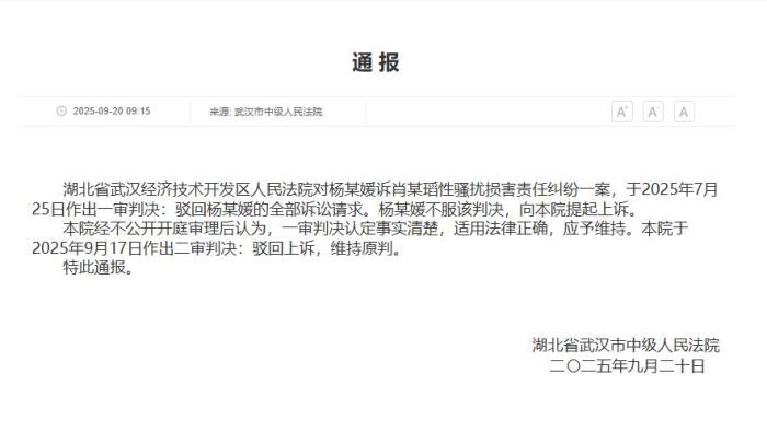 武汉中级法院审判后,第一堂的裁决明确确定了事实,必须适当地应用和支持法律。法院于2025年9月17日发布了下一个第二间裁决。他们驳回了上诉并捍卫了原始裁决。