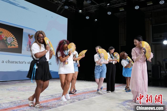中国新闻服务局,北京,7月15日(古肯记者)醒来的袖子,袖手旁观,粉丝们遮住了脸,并有一只马……在2025年中国和美国青年合唱团的14日,年轻的美国人参观了中国歌剧学院,并在旅途中经历了传统歌剧的美女。