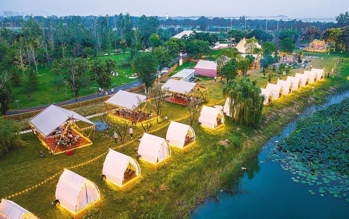 10月3日,游客在湖岸经济和技术发展区的奥林匹克体育公园露营并享受了假期。近年来,黄希在生态环境,公园和湿地公园中占据了优势,探索了营地的经济,并将其与B&B促销,文化,体育,音乐和其他行业融合在一起,以促进文化和旅游业的综合发展。 (Hubei Zhou Wei通讯员的照片)