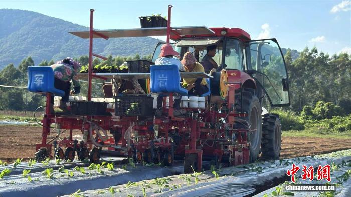 中国新闻社扬朱(Yongju),9月18日(周·温(Zhou Wen)和徐·温宾(Xie Wenbin)),农民在西哈伊市的江西康达多(Jiangxi Condado)的西亚吉村(Xiyan County)的Xiajietou Village的一个蔬菜基地种植秋季和冬季蔬菜。